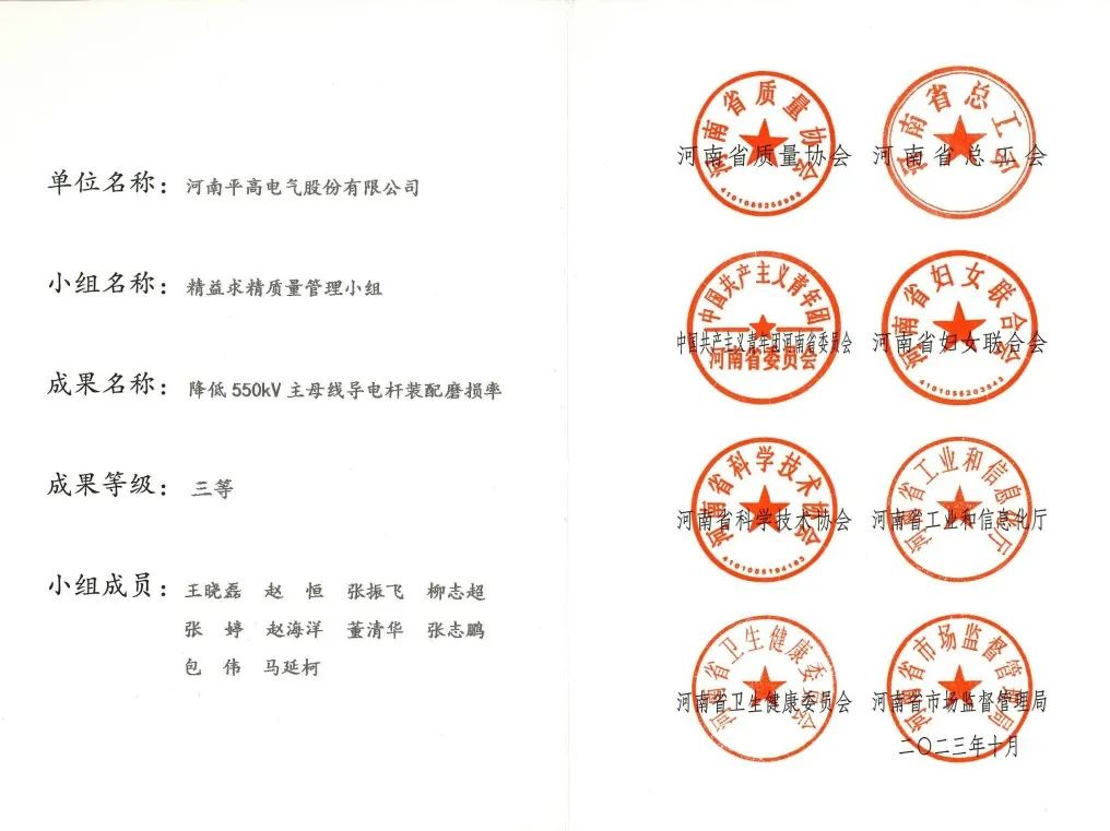 事業(yè)部完成的科技項目先后榮獲“中國電氣裝備集團有限公司科技進步獎”二等獎1項、三等獎1項;“河南省電力科學技術獎”三等獎1項;“平高集團科技進步獎”二等獎3項、三等獎3項。