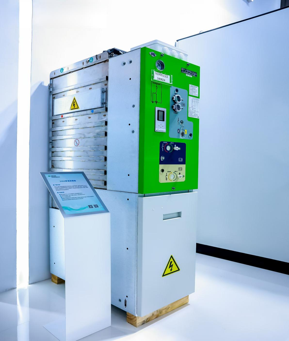 平高集團(tuán)、平高電氣還展出了100千瓦儲能變流器,最高轉(zhuǎn)換效率≥98%,支持多機(jī)并聯(lián)和智能健康監(jiān)測,適配工商業(yè)儲能及移動式儲能需求。此外,N2X-24型氮?dú)饨^緣開關(guān)柜和PGR4.2-24型干燥空氣絕緣環(huán)網(wǎng)柜采用環(huán)保氣體替代六氟化硫(SF6),滿足城市電網(wǎng)及高海拔、高鹽霧等嚴(yán)苛環(huán)境需求。
